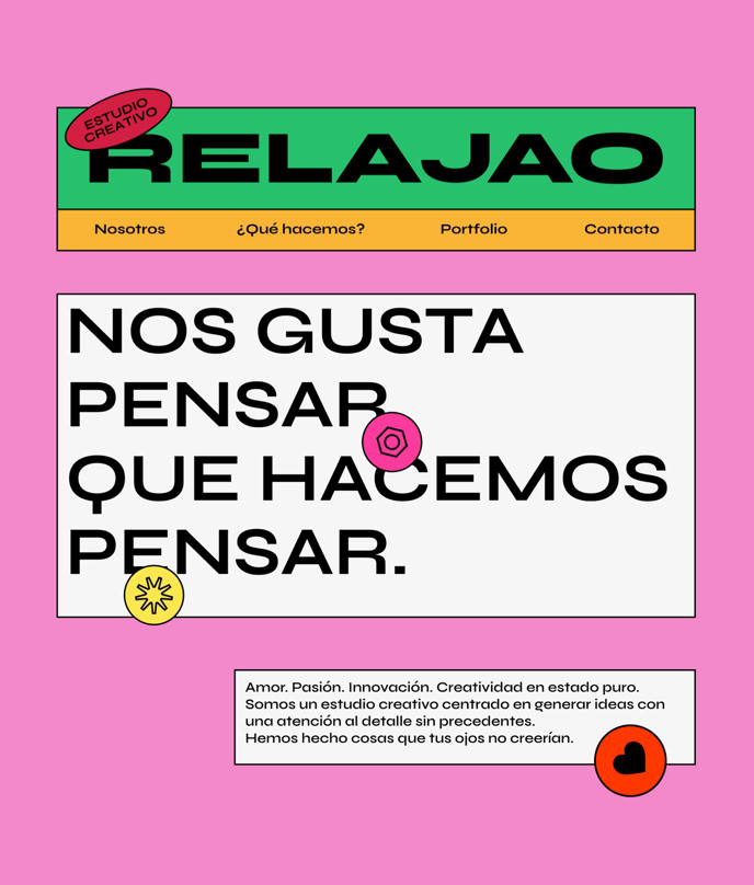 Relajao fue un estudio creativo que puse en marcha junto a compañeros durante mi etapa de formación. Nació como un espacio de experimentación donde trabajábamos sin etiquetas, combinando producción de vídeo, eventos, diseño y otras disciplinas creativas.